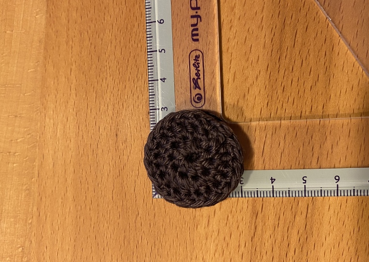 Meine Kekse wurden 3 x 3 cm - siehe gern auch in den Bilder nach, hier liegen die fertige Häkelteile auf dem Maßband um einen Anhalt zu geben.