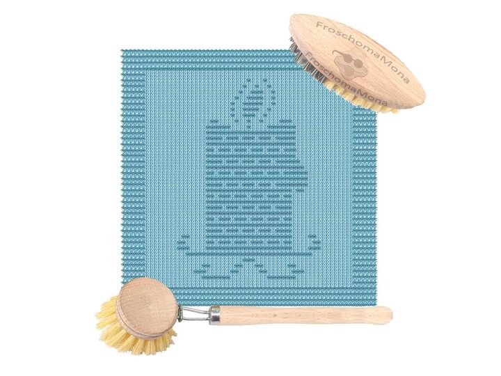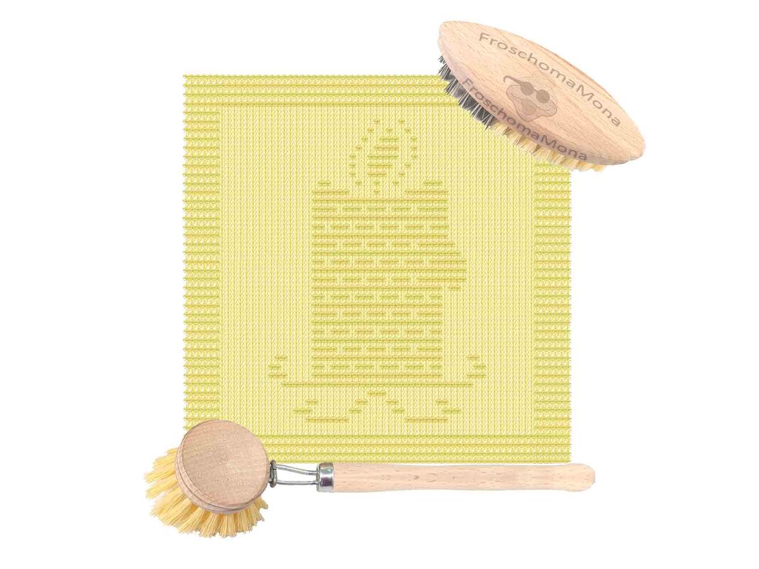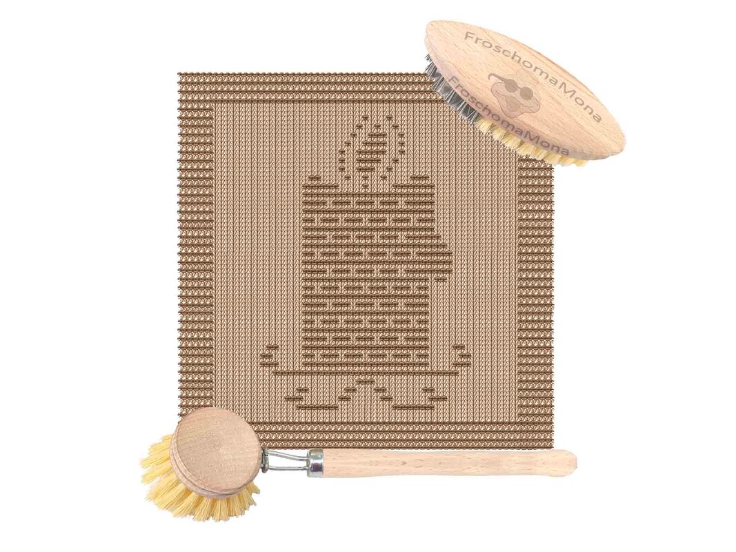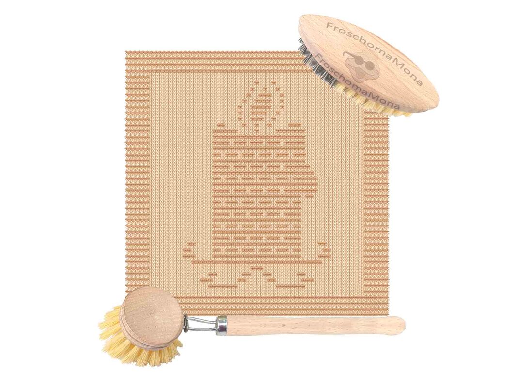 So kannst du entweder nach Zählmuster oder nach schriftlicher Anleitung oder beide in Verbindung verwenden, wenn du das Spültuch strickst.