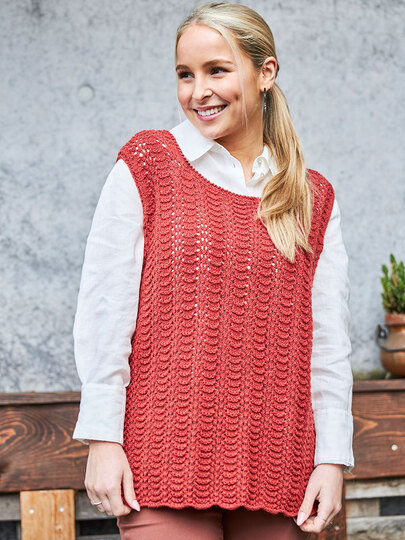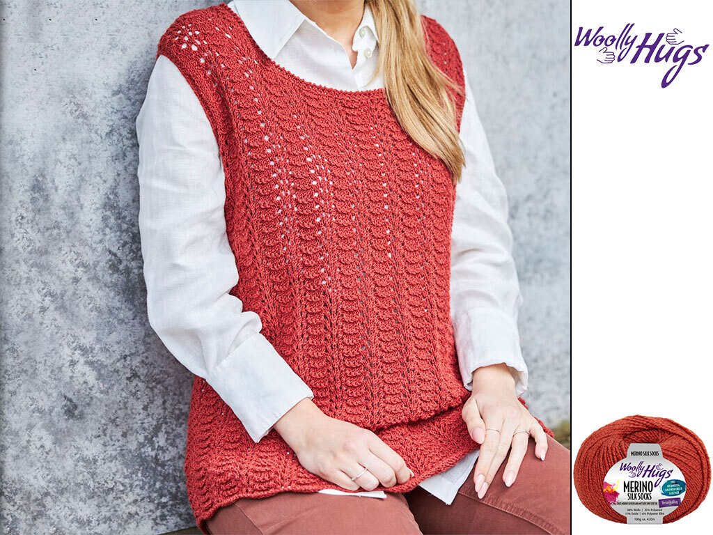 Das Top ist ein wunderschönes, schlichtes Teil, das mit seinem raffinierten Muster ein echter Hingucker ist. Es ist aus hochwertiger Wolle gefertigt Diese Garn gibt es in schönen tollen Farben. So kannst du dein Lieblingstop in deiner Lieblingsfarbe stricken.