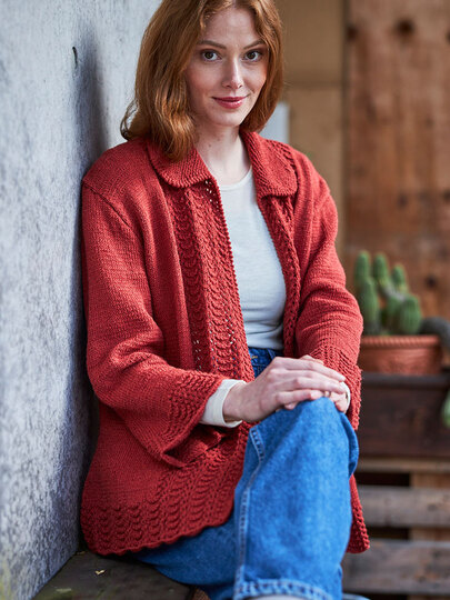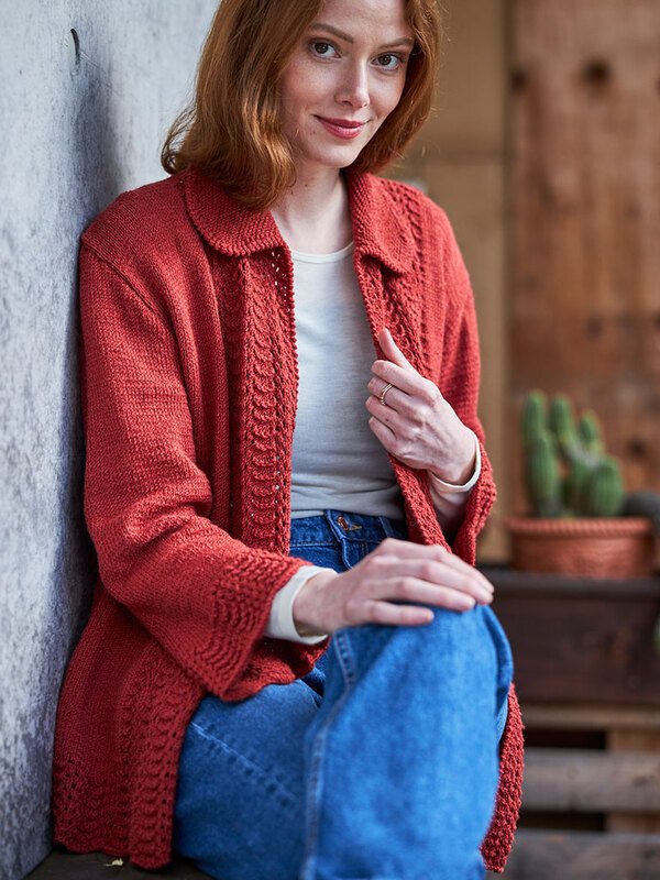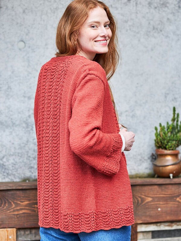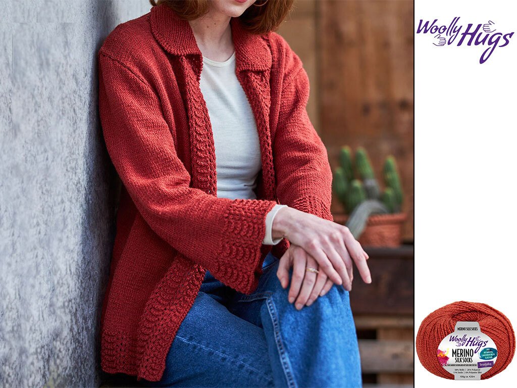 Die Jacke ist ein wunderschön und mit seinem raffinierten Muster ein echter Hingucker. Die Jacke ist aus hochwertiger Wolle gefertigt. Dieses Garn gibt es in schönen tollen Farben. So kannst du dein Lieblingstop in deiner Lieblingsfarbe stricken.