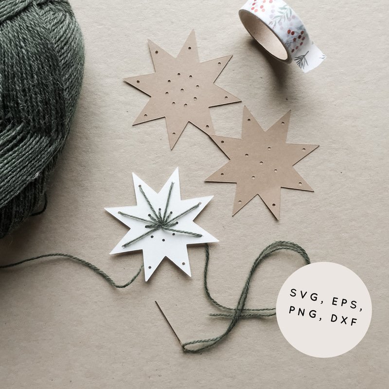 Du bekommst eine ZIP-Datei mit den fünf verschiedenen Sternen auf einer A4 Seite jeweils als PNG, SVG, EPS und DXF Datei. Damit bist du für die gängigen Plotter gut gerüstet und kannst direkt loslegen.
