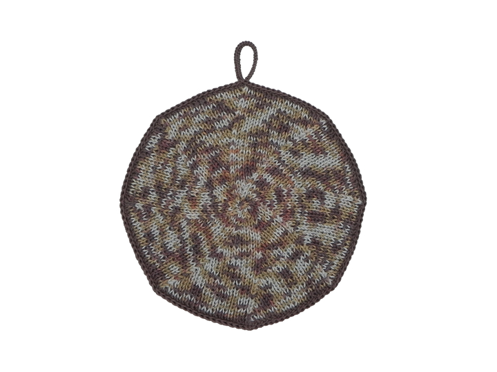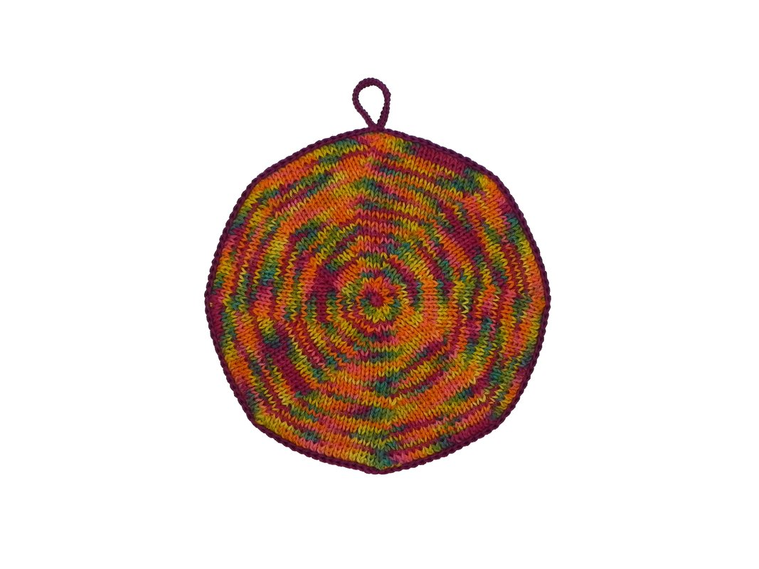 Es ist sowohl zum Gebrauch wie auch zur Dekoration in der Küche geeignet. Auch im Wohnzimmer macht sich dieser Topflappen sehr gut als Untersetzer und Farbtupfer auf jeder Tafel und jedem Tisch.