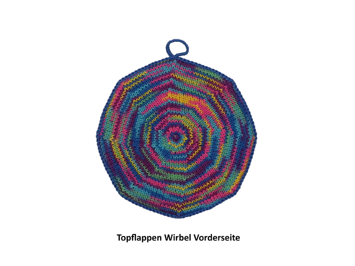 Dies ist eine Anleitung zur Herstellung eines gestrickten Topflappens in achteckiger Form.