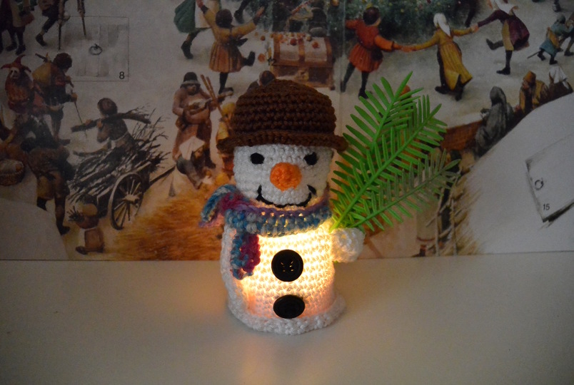 2) mit einem elektrischen Teelicht im Bauch wird er zur Weihnachtsdeko