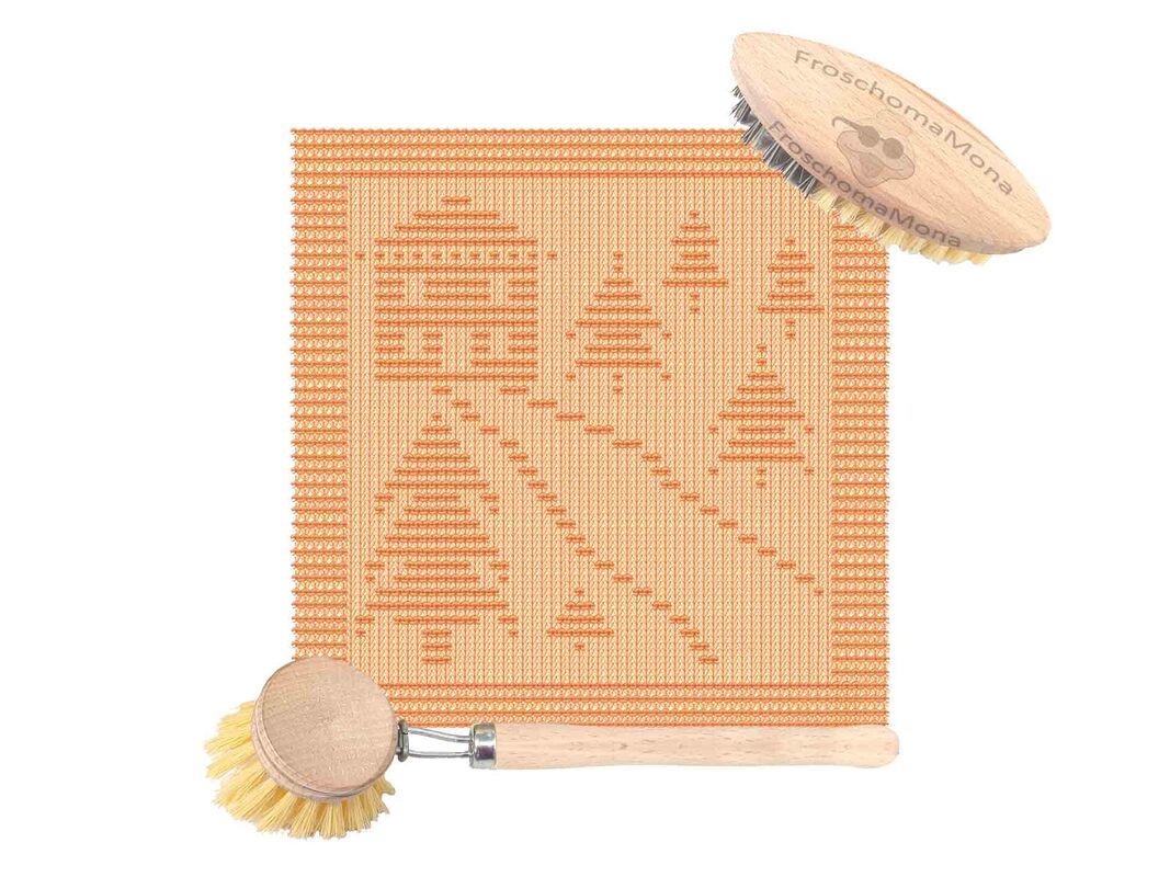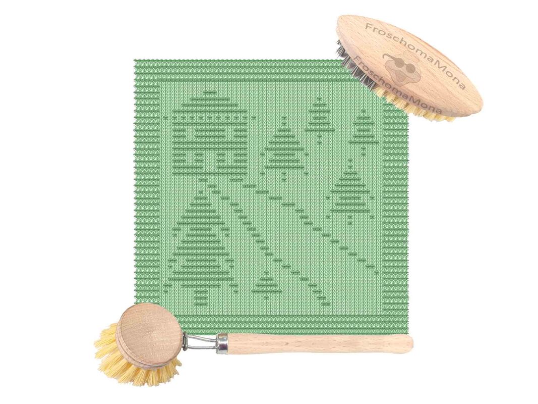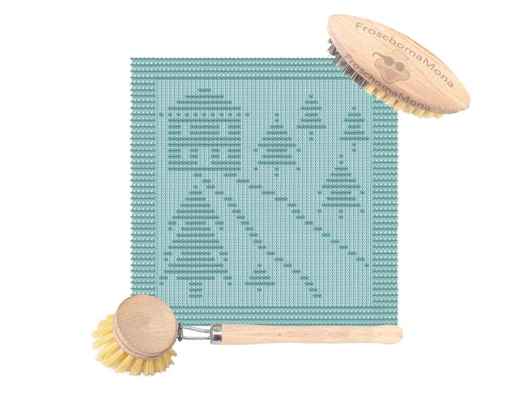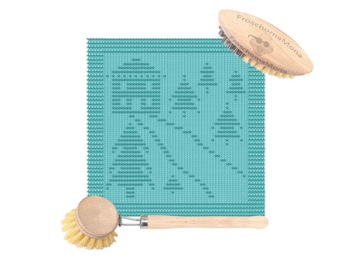 So kannst du entweder nach Zählmuster oder nach schriftlicher Anleitung oder beide in Verbindung verwenden, wenn du das Spültuch strickst.