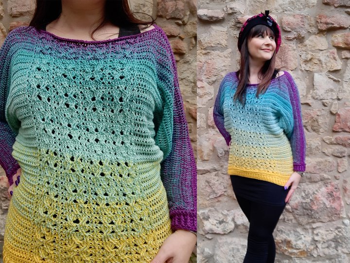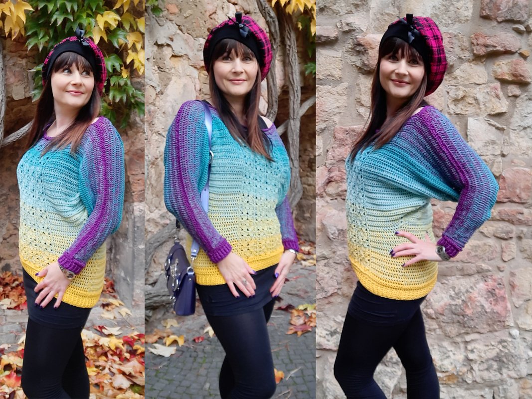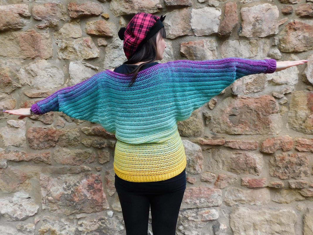 In dieser Häkelanleitung erkläre ich dir, wie du diesen Fledermauspulli häkeln kannst. Du kannst ihn auf jede Größe anpassen, und in der Anleitung erkläre ich dir genau, wie das geht.