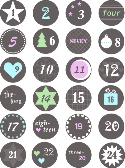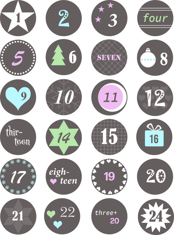 Dazu gibt es ein von mir entworfene Nummerierung für die Verwendung als Adventskalender - du erhältst drei unterschiedliche Farbdesigns als PDF-Datei zum Ausdrucken (siehe Bilder).