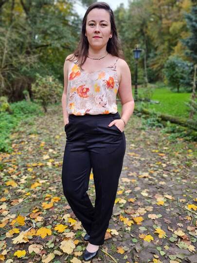 Aus dem von mir bevorzugt angegebenen Romanitjersey, eignet sich diese Hose ideal für schickere Anlässe und fürs Business. Einfach in den Koffer legen und am Ziel angekommen, fast wie frisch gebügelt, einfach anziehen. Die Hose ist so bequem, dass man sie nicht mehr ausziehen mag und eignet sich daher sogar auch als Couchhose für Zuhause exzellent. Mit den Varianten des engen oder weiten Beines, den optionalen Eingriffstaschen, der optionalen Biesen, kannst du ohne weiteres viele verschiedene Looks und Outfits daraus erstellen.