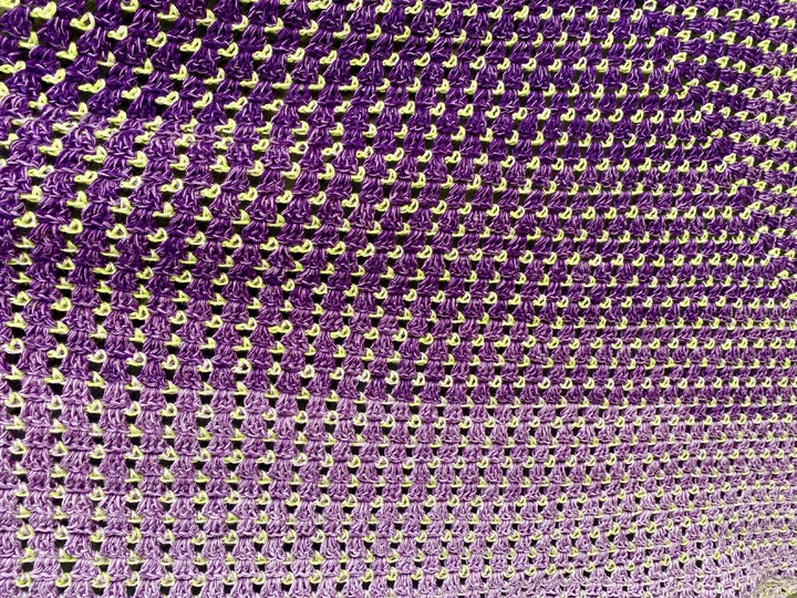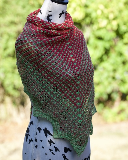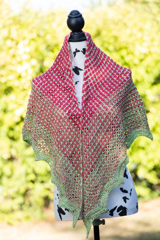 Die Anleitung zum Häkeltuch Erdbeerfeld zeigt dir, wie du mit einem zwei- oder mehrfarbigen Farbverlaufs-Bobbel einen toll kontrastierten Effekt um deine Schulter zauberst.