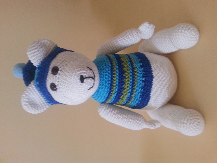 Emil Eisbär wird, unter Verwendung des angegebenen Materials, 25 cm hoch.