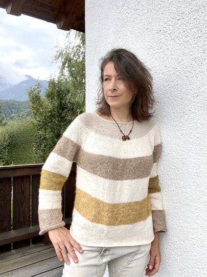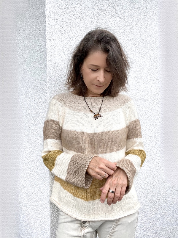 Diesen Pullover und die Modelle meiner fleißigen Testerinnen stelle ich Dir im Detail in Folge 44 auf meinem YouTube-Kanal "Strick & Fit" vor.