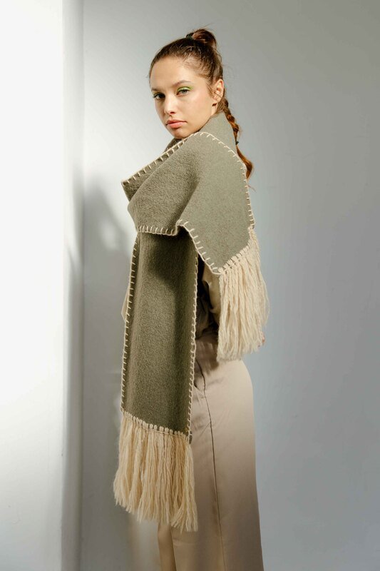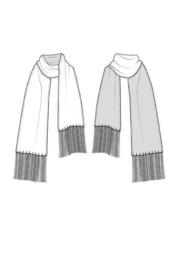 Ganz egal, ob du dich für einen Abend schick machst oder deinem Alltagsoutfit einen Hauch von Raffinesse verleihen möchtest, der Fransenschal ist ein vielseitiges und wärmendes Accessoire. Das Beste an diesem Fransenschal ist, dass du ihn ohne Nähmaschine und ohne Stricken nähen kannst, indem du eine einfache Handnähtechnik nutzt. Vollende den Look mit dem dazu passenden Wickelmantel The Kelly Coat.