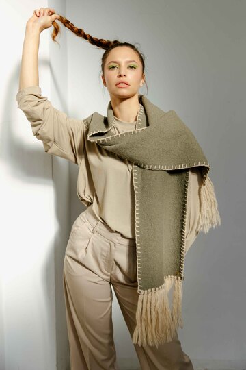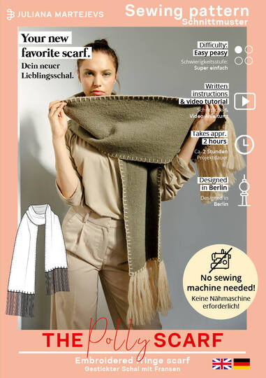 Mit dem Schnittmuster für einen Schal ohne Stricken The Polly Scarf nähst du dir ein stilvolles und nachhaltiges Accessoire. Das mit viel Liebe und Sorgfalt konstruierte Schal Schnittmuster ermöglicht es dir, einen Fransenschal aus Öko-Tex zertifiziertem Walkloden zu nähen, der Qualität und Umweltbewusstsein in jedem Stich vereint. Das Schnittmuster für einen Schal ohne Stricken kommt mit einer Videoanleitung und schriftlichen Anleitung, die dich durch die Schritte des Nähens führen. Juliana zeigt dir, wie einfach die Sticktechnik geht und wie du Fransen fertigst, um deinem Schal eine moderne Note zu verleihen.