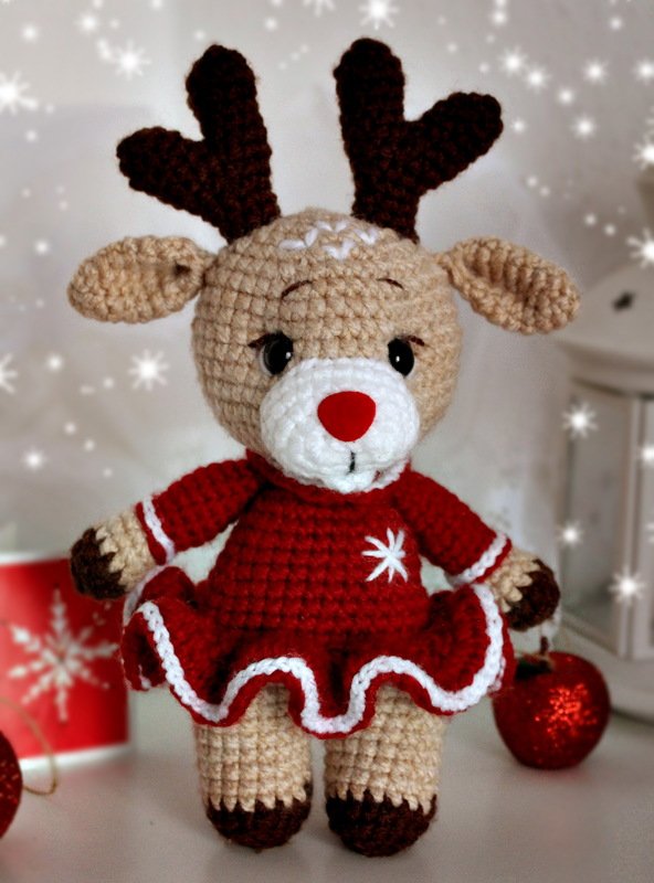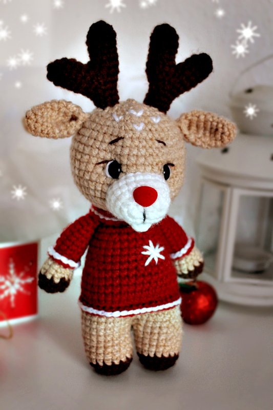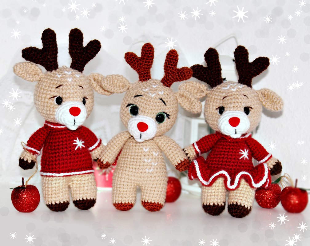 Kleine schöne Rentiere für die Weihnachten. Mit dieser Anleitung können Sie drei verschiedene Arte vom Rentier häkeln.
