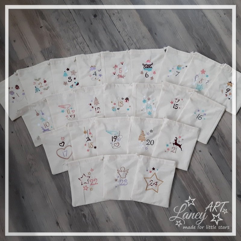 Auf dem ersten Foto seht ihr als Beispiel meine bestickten Beutel. (Es handelt sich um die Datei - nicht um bestickte Ware.)