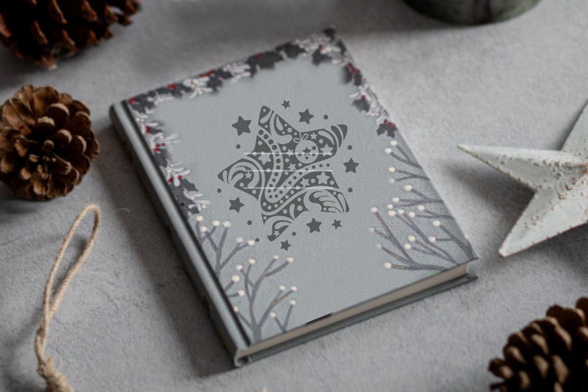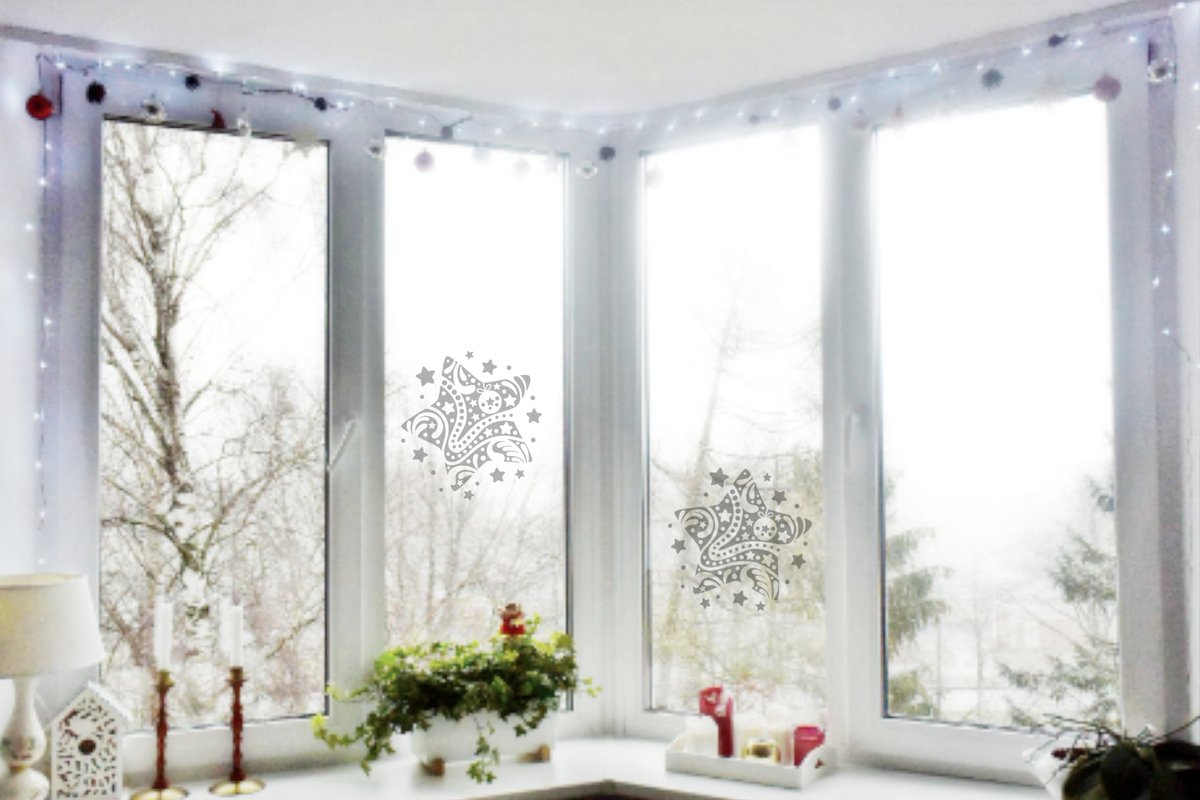 und anderen Materialien als Weihnachtsdekoration an Fenstern, Tischen, Wänden,