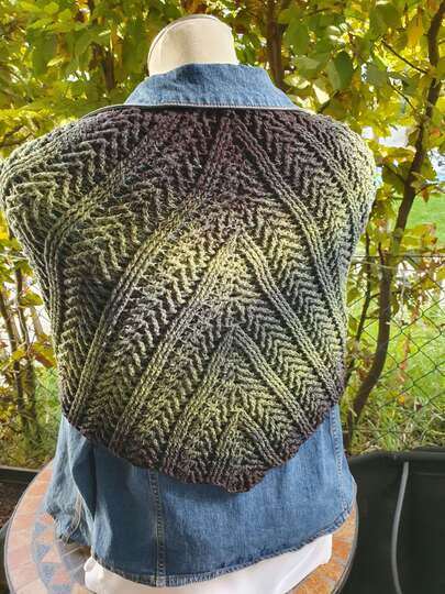 Trendy Wendy ist ein flaches Wendetuch mit 3D-Effekt, das von beiden Seiten getragen gut aussieht. Wenn du gern Reliefstäbchen häkelst, wirst du beim Häkeln viel Freude haben.