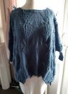 Dieser Pulli fällt durch sein Blattmuster richtig auf. Da er in Oversize gestrickt ist, fällt er auch bei großen Größen schön und man kann sich sehen lassen.
