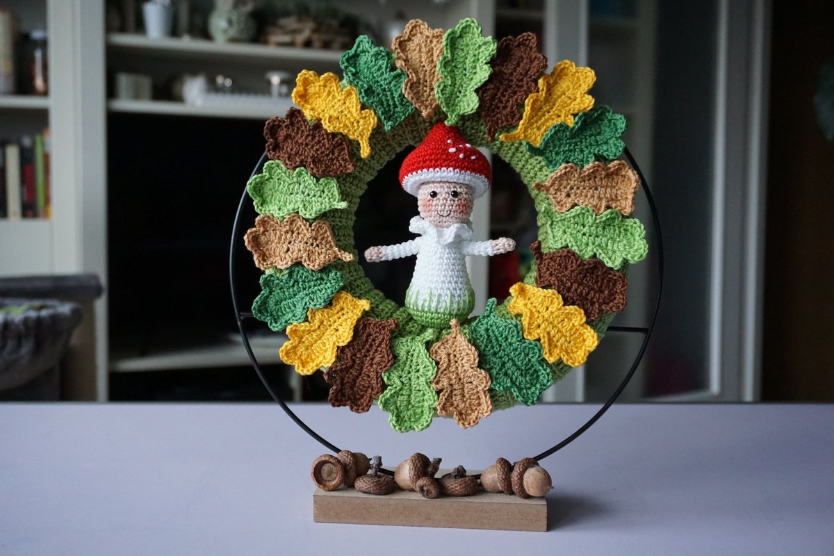 Häkelanleitung Herbstkranz mit Fliegenpilz