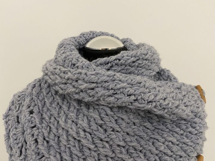 „Neckvärmare“ auch. Mit einem warmen Wintergarn gehäkelt, ist der Schalkragen ein Begleiter für die kalte Jahreszeit. Und durch die Knöpfe ist er leicht ab- und anzulegen.