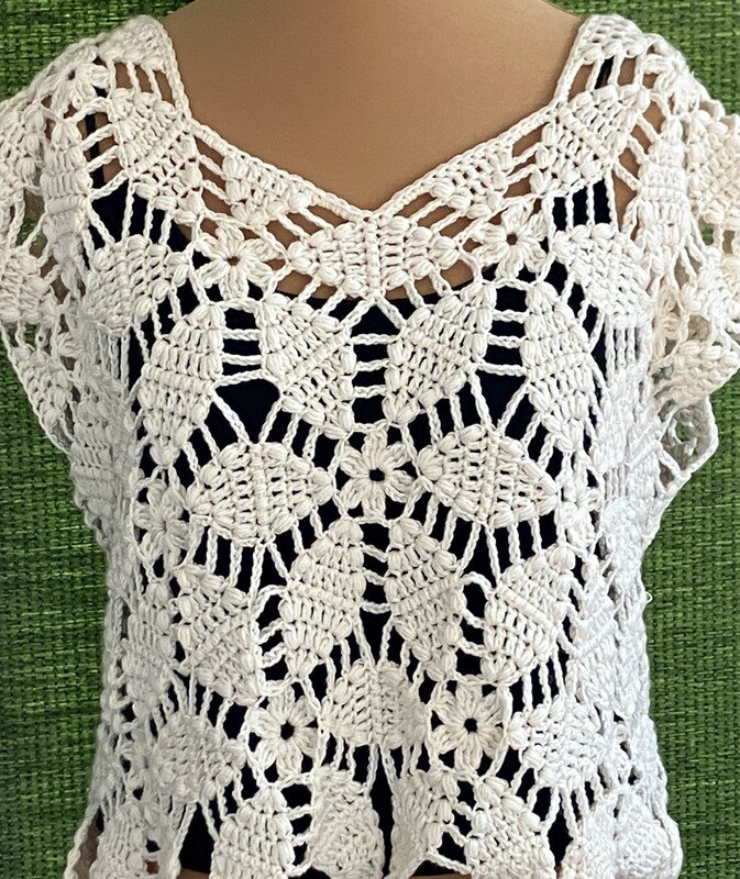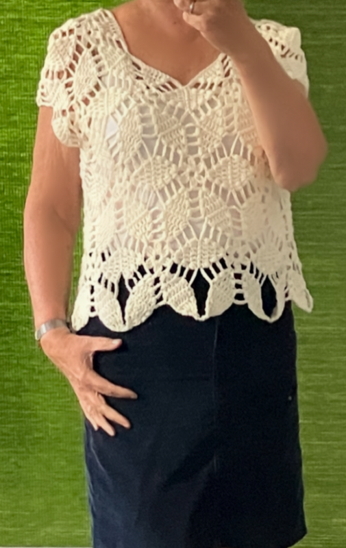 Ich dokumentiere das Entstehen des Shirts oder des Schultertuchs Schritt für Schritt. Mit vielen Fotos und Schemazeichnungen erkläre ich das Muster und die Zusammenstellung. Du musst keine Häkelschrift lesen können. Ich zeige das Muster zwar auch in Häkelschrift aber zusätzlich in Wort und Bild. Die Anleitung ist in den Größen M bis XXL angegeben.