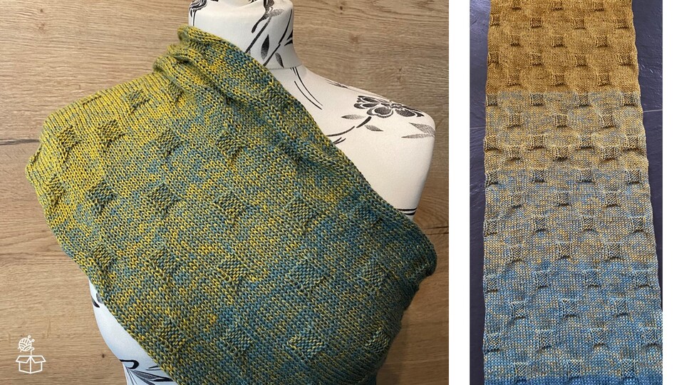 Bei „Zalina“ handelt es sich um eine Anleitung mit der ihr einen Schal, eine Stola oder eine Halssocke arbeiten könnt.