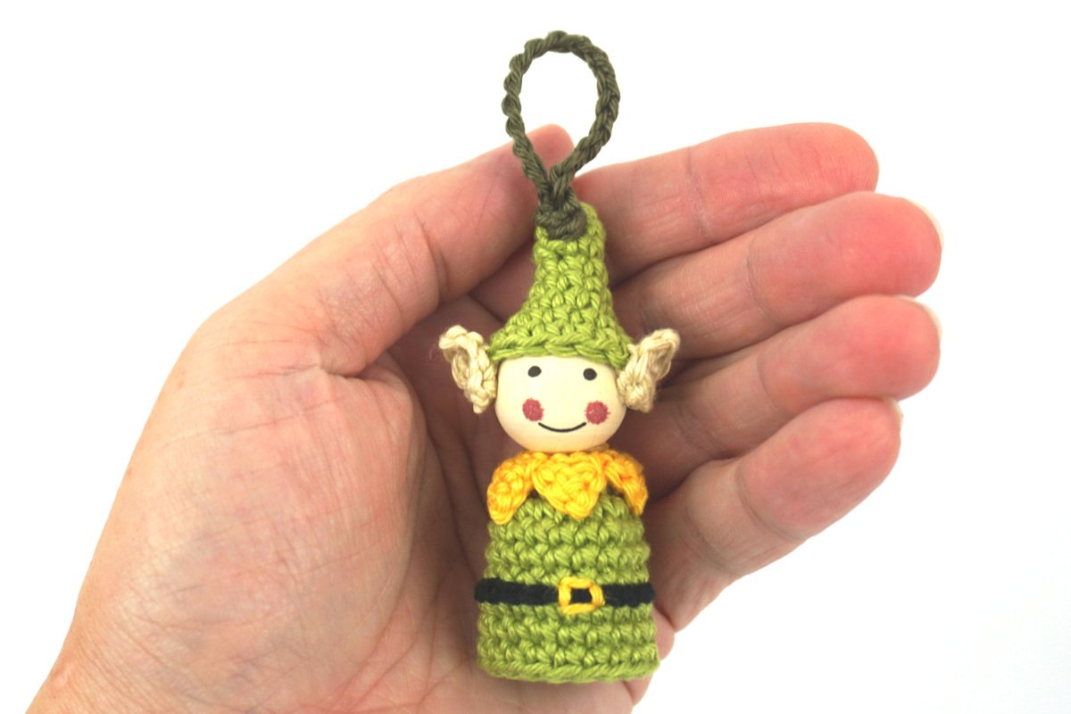 Die Elfe wird mit der angegebenen Wolle ca. 7 cm hoch (ohne Schnur).