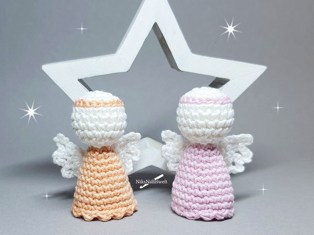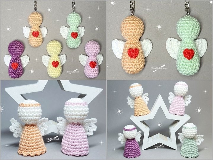 2 PDF Dateien, Schlüsselanhänger Mini Schutzengel 6 Seiten, Mini Engel 7 Seiten, ausführlich erklärt und gut bebildert. Häkelgrundkenntnisse sollten vorhanden sein. Es wird mit Fadenring, Luftmaschen, Kettmaschen, festen Maschen, Zunahmen und Abnahmen gearbeitet. Das Häkeln kleinerer Teile mit wenigen Maschen, sowie das Vernähen ist etwas "fummelig", aber auch ambitionierte Anfänger können es schaffen, denn viele Detailfotos zeigen Schritt für Schritt wie die kleinen Engelchen fertig werden.