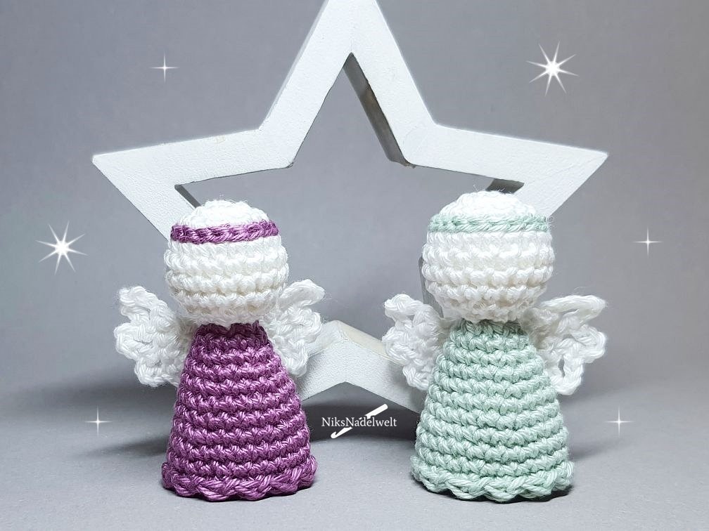 Mit diesem Sparset kannst du zwei ganz verschiedene süße Engelchen häkeln. Der Mini Schutzengel als Schlüsselanhänger ist auch sehr schön als Deko geeignet, statt Schlüsselanhänger einfach ein hübsches Geschenkband befestigen. Der Mini Engel mit seinem Heiligenschein ist ebenfalls eine zauberhafte Deko. Beide Engel sind ein liebes Geschenk für besondere Menschen, denn einen Schutzengel kann doch jeder gebrauchen ob zum Anhängen oder Hinstellen. Außerdem kannst du für diese Engelchen ganz prima deine Wollreste verbrauchen.