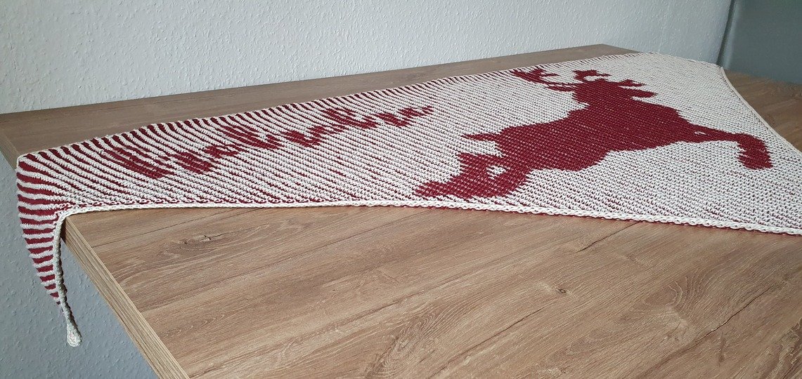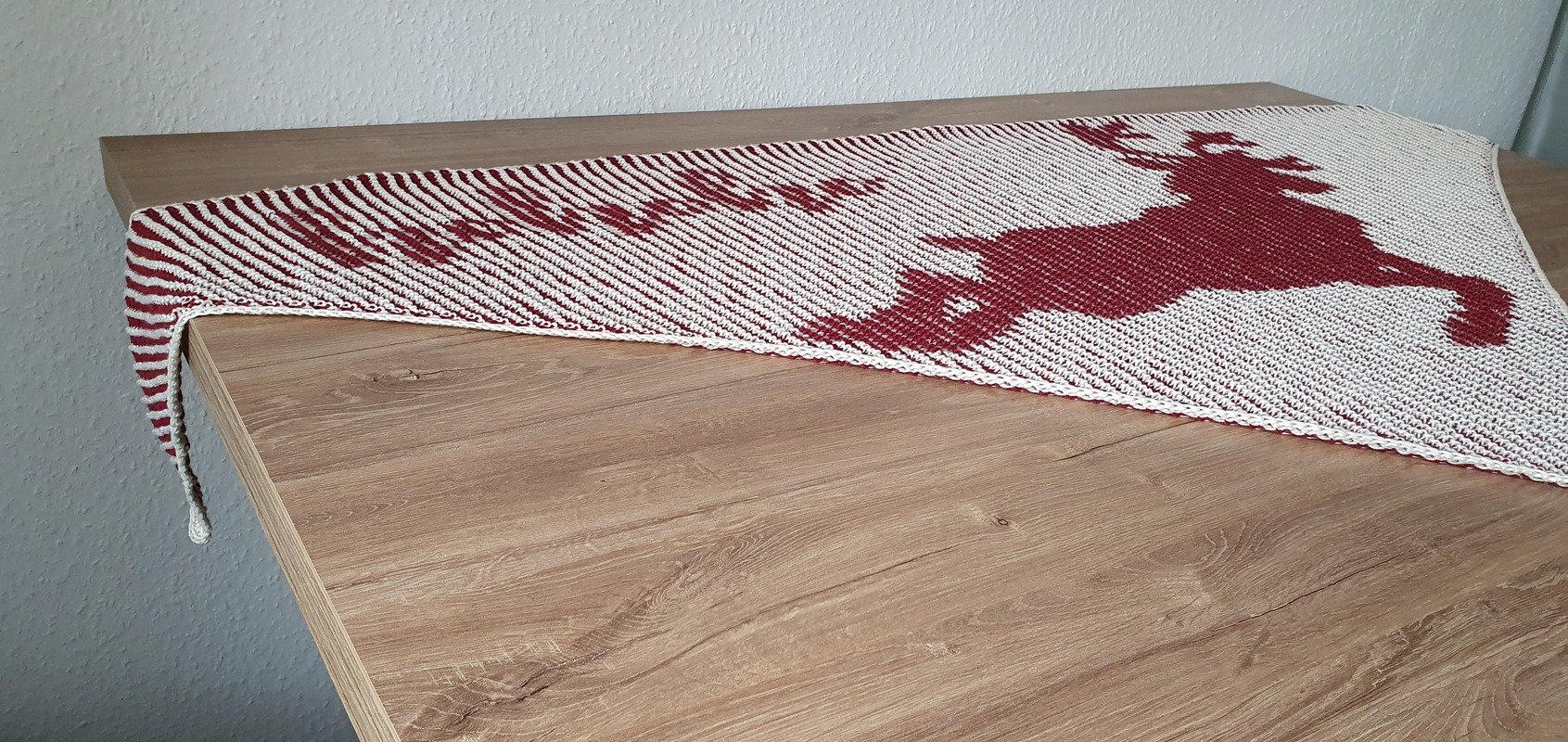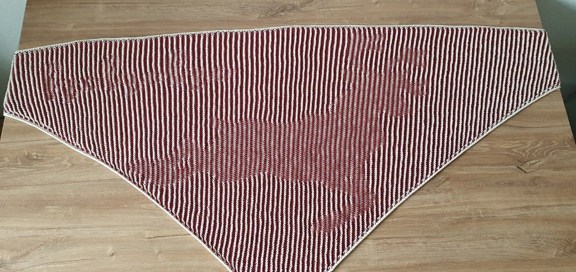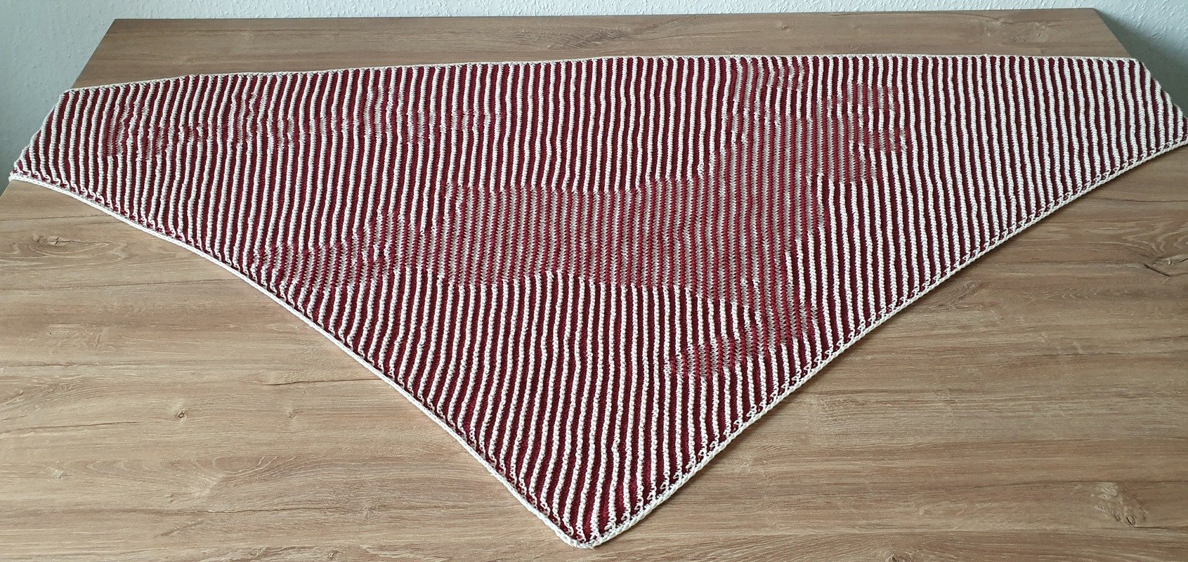 Das fertige Tuch hat bei mir eine Größe von etwa 170cm (Breite) x 78 cm (Tiefe).