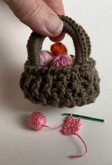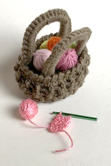 ich benutze für das Körbchen eine braune Wolle die auf 50 gr - 120 m hat und die Häkelnadel 3