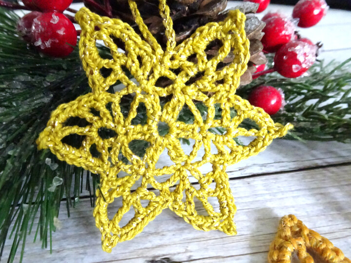 Dieser hübsche filigrane Stern ist in nur 5 Runden zu häkeln und sieht besonders festlich aus, wenn du ihn aus Glitzergarn häkelst.
