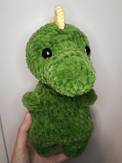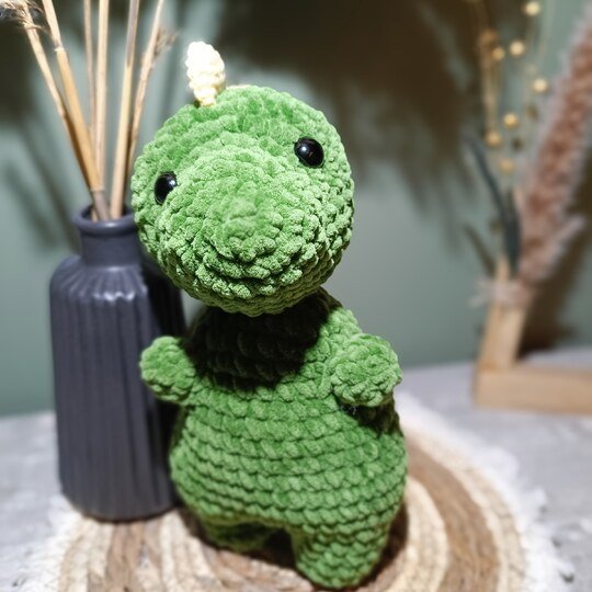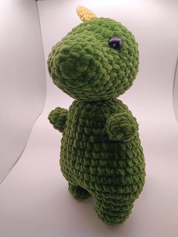 Mit dieser Anleitung häkelst du einen super süßen Dinosaurier zum Kuscheln und Knuddeln.