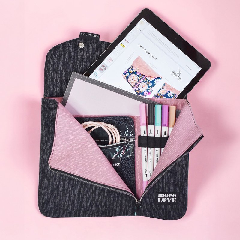 Ob für das neue Schul-Tablet, das Lieblingsbuch, Bullet Journal Kalender, den E-Reader, Malbücher oder das Notebook. Das Taschen-Schnittmuster Smartkram ist die Vorlage für deine neue Schutzhülle. Darin Platz hat alles, was du in der Schule, zum Arbeiten oder auf Reisen im Urlaub brauchst.