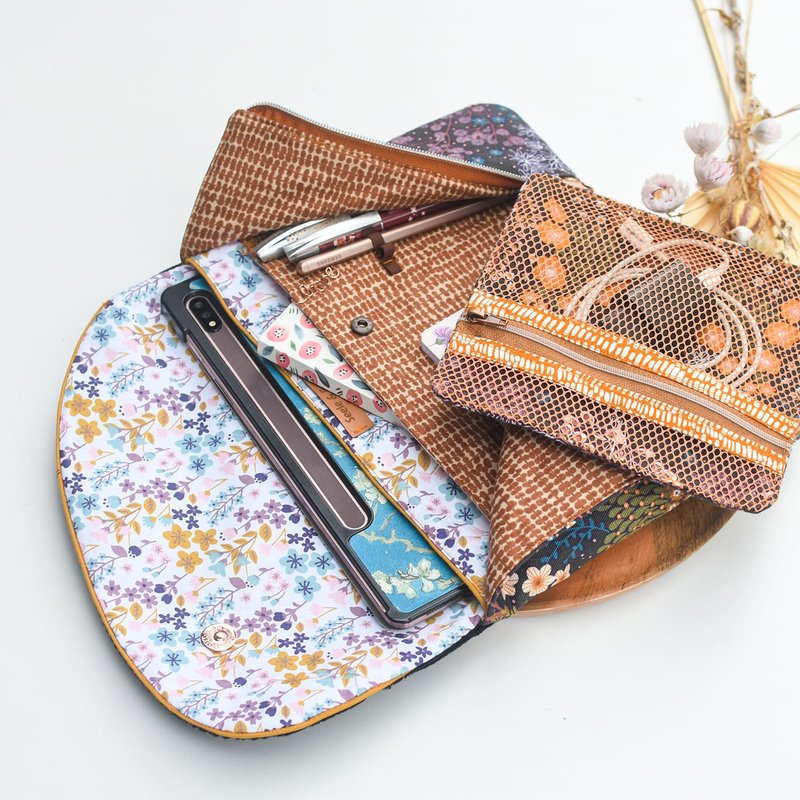 Wähle aus verschiedenen Größen und Modulen: Schnittmuster in 3 Größen. Für Taschen mit einem Inhalt bis 8″, 10″ oder 12″. Mit oder ohne 3-4 cm Tiefe für mehr Stauraum.