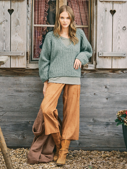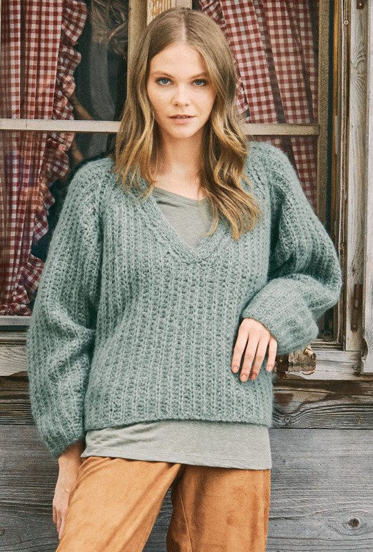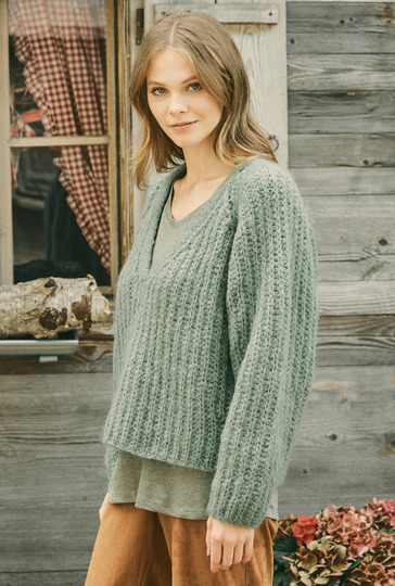 Leger und kuschelig, das liegt nicht zuletzt am beliebten Halbpatentmuster in dem dieser wunderschöne Pullover gestrickt ist. Auch das flauschige Alpakagarn von LANA GROSSA tut sein übriges für den maximalen Flauschfaktor. Schlicht gehalten hat man das Muster schnell im Kopf. Das perfekte Modell für geübte Anfänger. Die Strukturen des Musters passen sich perfekt an die Raglanabnahmen an den Ärmeln ein und sorgen für tollen Tragekomfort. Der V-Auschnitt schmeichelt und gibt dem Pullover einen eleganten Touch. Die Anleitung enthält einen übersichtliche und leicht nachzustrickende Strickschrift,einen detaillierten Schnitt und eine ausführliche Beschreibung. So steht diesem Projekt nichts mehr im Wege. Der Pullover kann ich den Größen 38/40 und 44/46 nachgearbeitet werden.