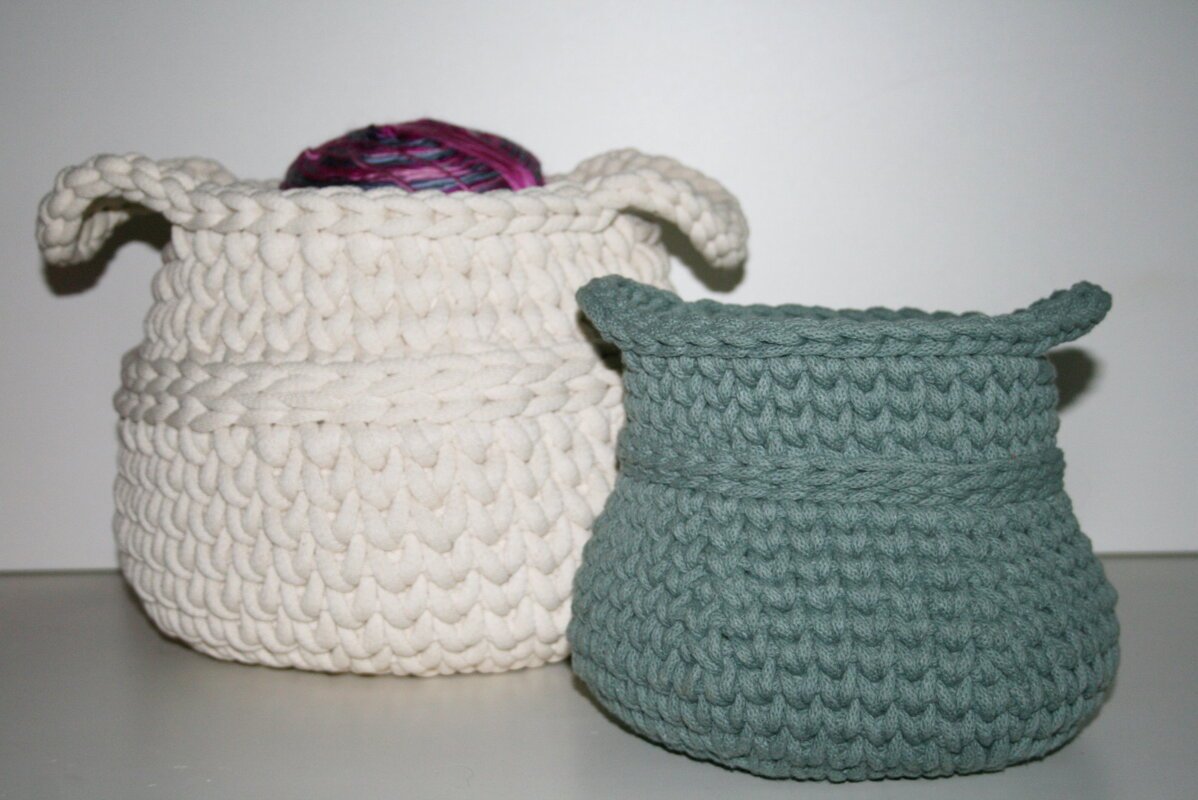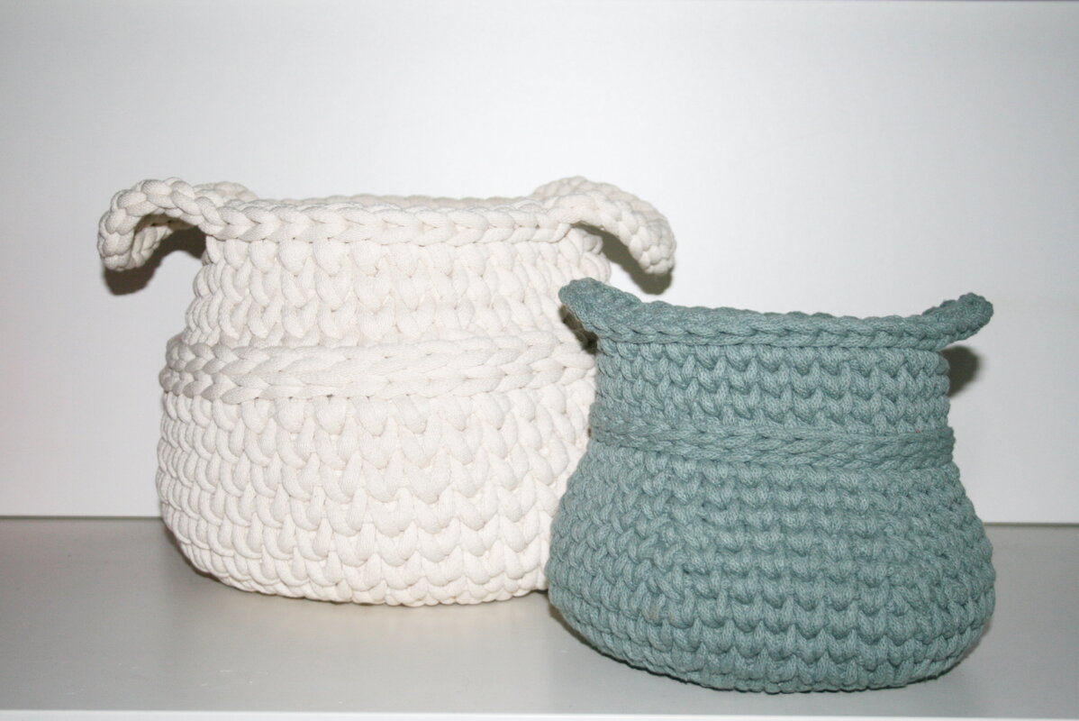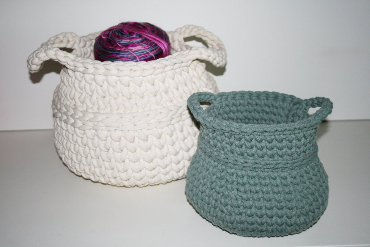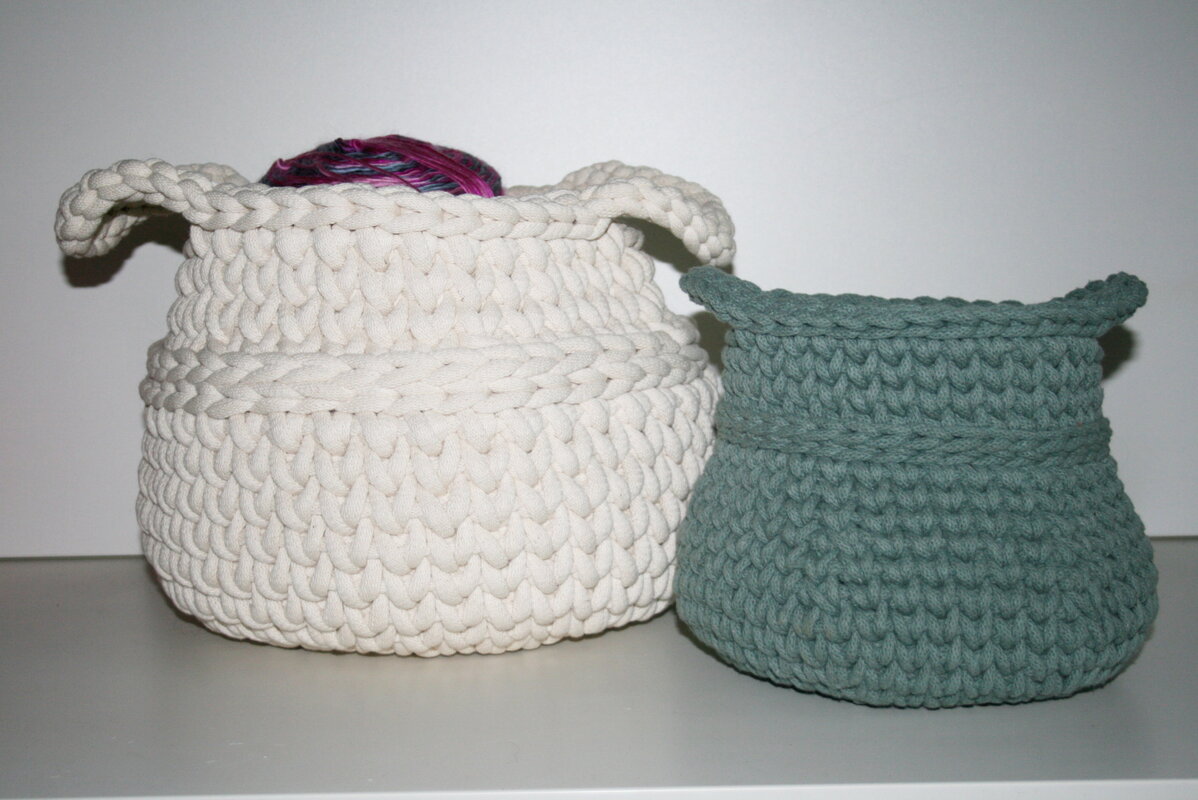 Mit dieser Anleitung erschaffst du im Handumdrehen stylische und praktische Aufbewahrungskörbe, die durch ihre markante bauchige Form und die grobe Maschenstruktur sofort ins Auge fallen.