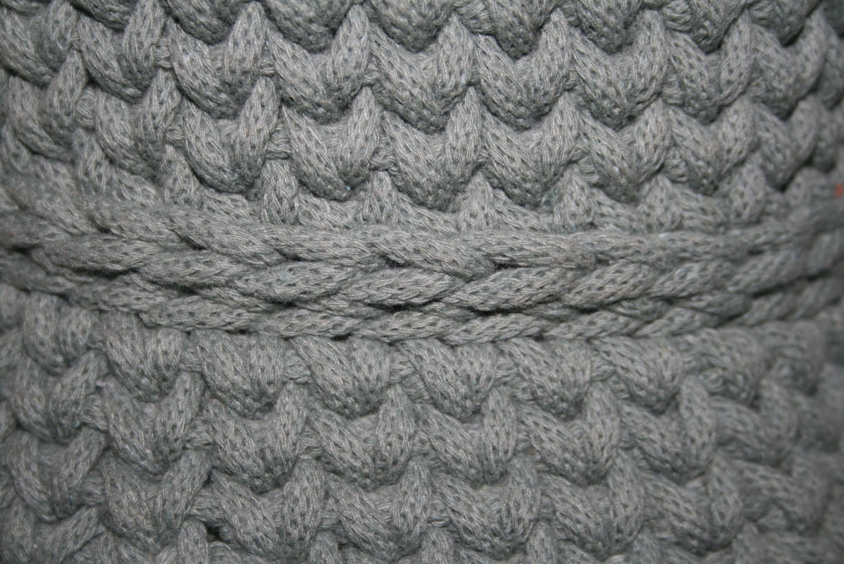 Struktur & Form: Das besondere Maschenbild (Strickstich/Wastel-Stich) verleiht dem Korb eine hohe Stabilität und eine hochwertige Optik, die fast wie gestrickt wirkt.