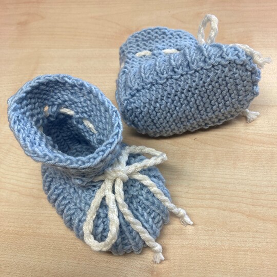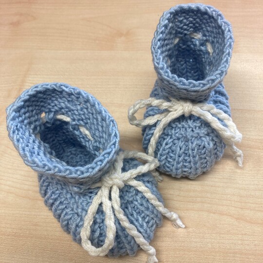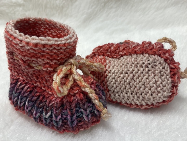 Stricke für Dein Baby diese niedlichen Schuhchen! Sie halten Babys Füße kuschelig warm.