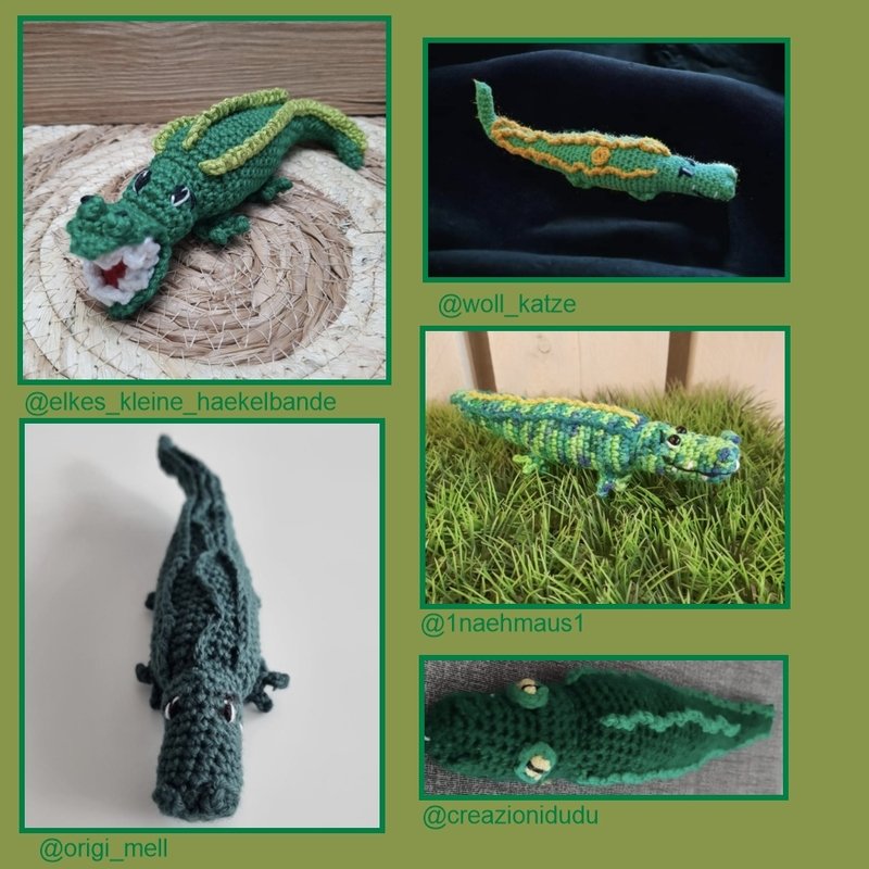 Du findest hier eine Anleitung für ein Krokodil. Dieses kann sowohl mit geöffnetem als auch geschlossenem Maul gehäkelt werden.