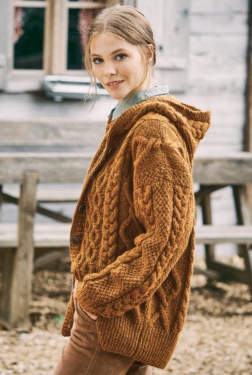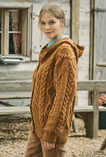 Wow, diese Jacke zeigt echtes Strickkönnen. Unterschiedliche Zopfmuster geben sich ein Stelldichein. Was bei anderen Modellen vielleicht überladen wirken könnte, bringt bei dieser legeren Jacke den letzten Pfiff. Hier kommen Musterfans voll auf ihre Kosten und das Stricken wird zur Herausforderung. Aber bloß keine Sorge: Mit der genauen Anleitung inklusive der einzelnen Arbeitsschritte, Strickschriften und Schnitte bist du für dieses Abendteuer bestens vorbereitet. Alle Teile werden einzeln von unten nach oben gearbeitet. Zum Schluss wir die Kapuze gearbeitet. Die Knopfblende wird nach später direkt angestrickt. Du kannst direkt in Größe 38/40, 42/44 oder 46/48 loslegen.