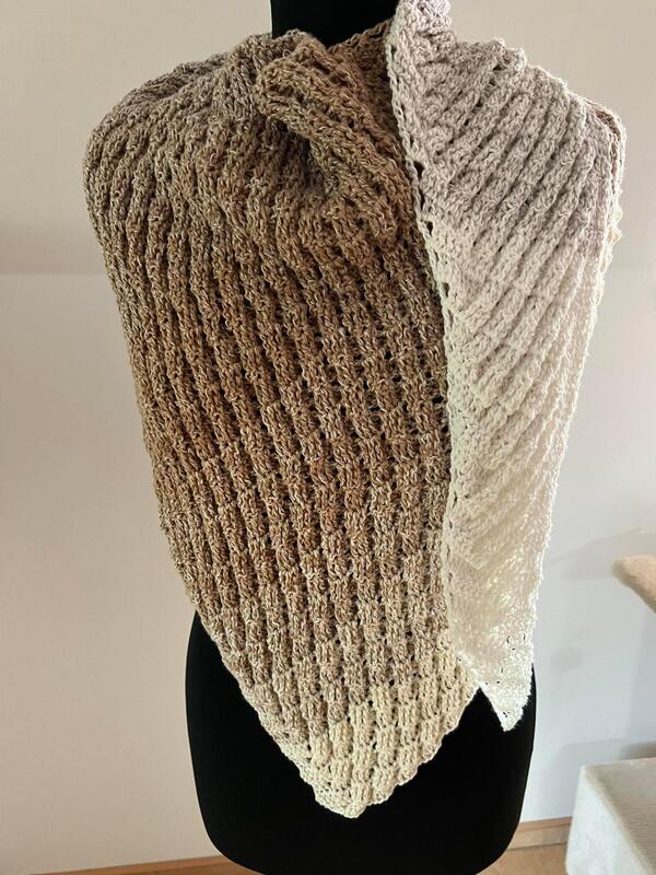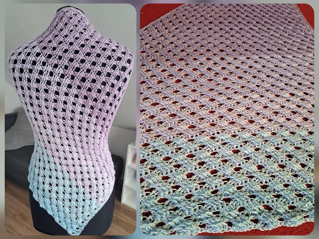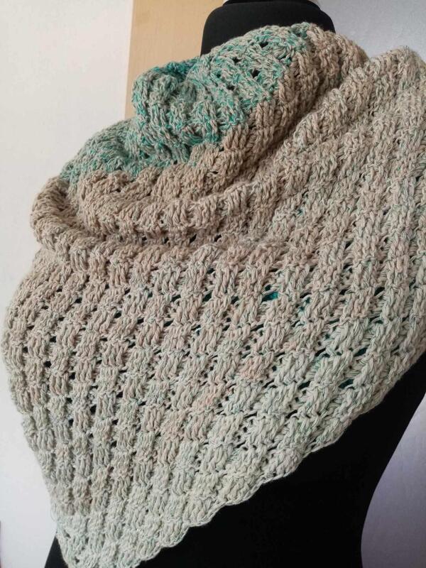 Die Anleitung zum Tuch besteht aus schriftlich ausformulierten Reihen und beinhaltet eine Häkelschrift.