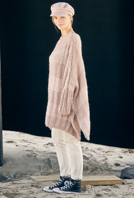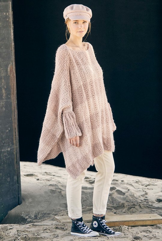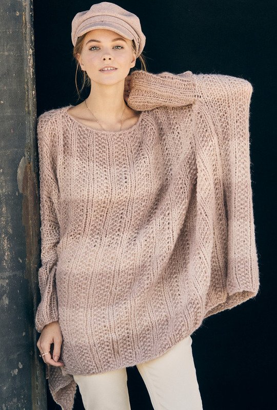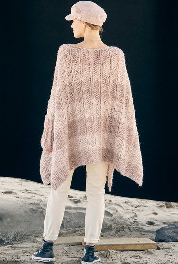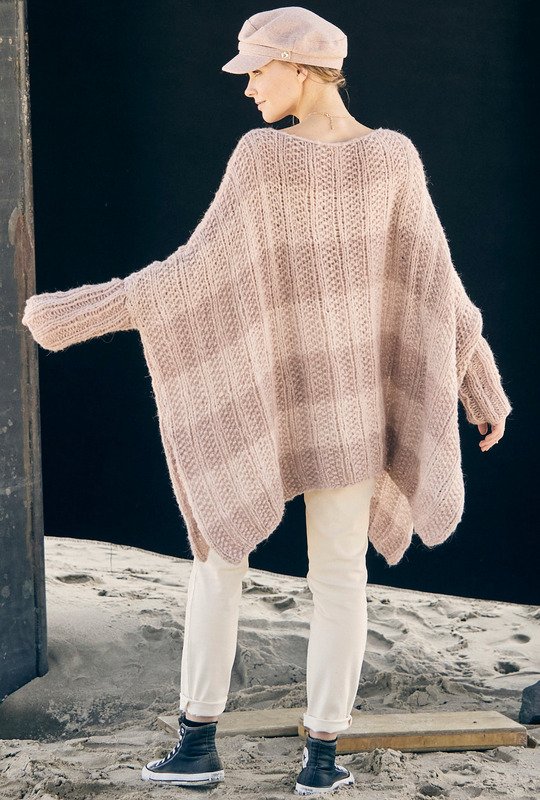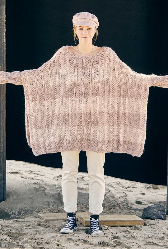 Pulli oder Poncho? Egal, es geht auch beides! Dieses tolle Projekt ist ein echter Traum aus Wolle. Volluminöse Strukturen treffen auf seidenweiches Garn. Die harmonische Streifenoptik entsteht durch den Wechsel zwischen zwei ser ähnlichen Farbtönen. Das bringt Harmonie beim Stricken und Tragen. Das Muster aus Permuster und senkrechten Streifen ist einfach gelernt und schnell im Kopf. Die gerade Passform fällt traumhaft und ist simpel zu stricken. Die Anleitung enthält einen detaillierten Schnitt und eine ausführliche Beschreibung. So steht diesem Projekt nichts mehr im Wege. Und das beste: Durch die Einheitsgröße passt dieser Traum in Rosé wirklich jedem. Perfekt als Geschenk!