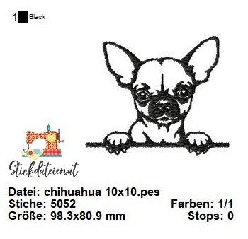 Unsere entzückende Stickdatei mit der Silhouette eines Chihuahua-Kopfes ist perfekt für alle Hunde-Enthusiasten!