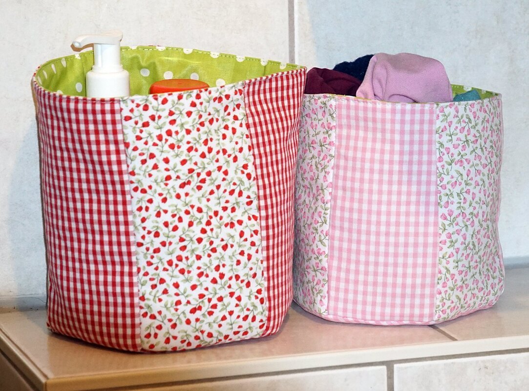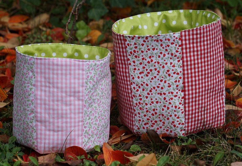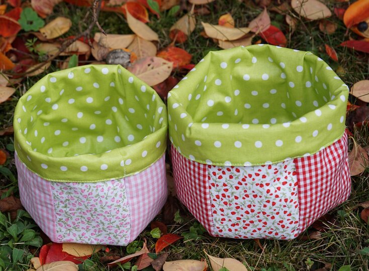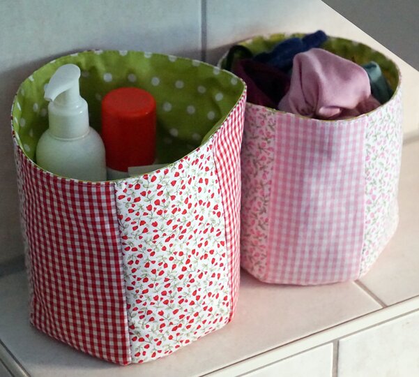 Die süßen Stoffkörbchen sind schnell genäht, wunderbar als Geschenk oder für´s Bad und Kinderzimmer.