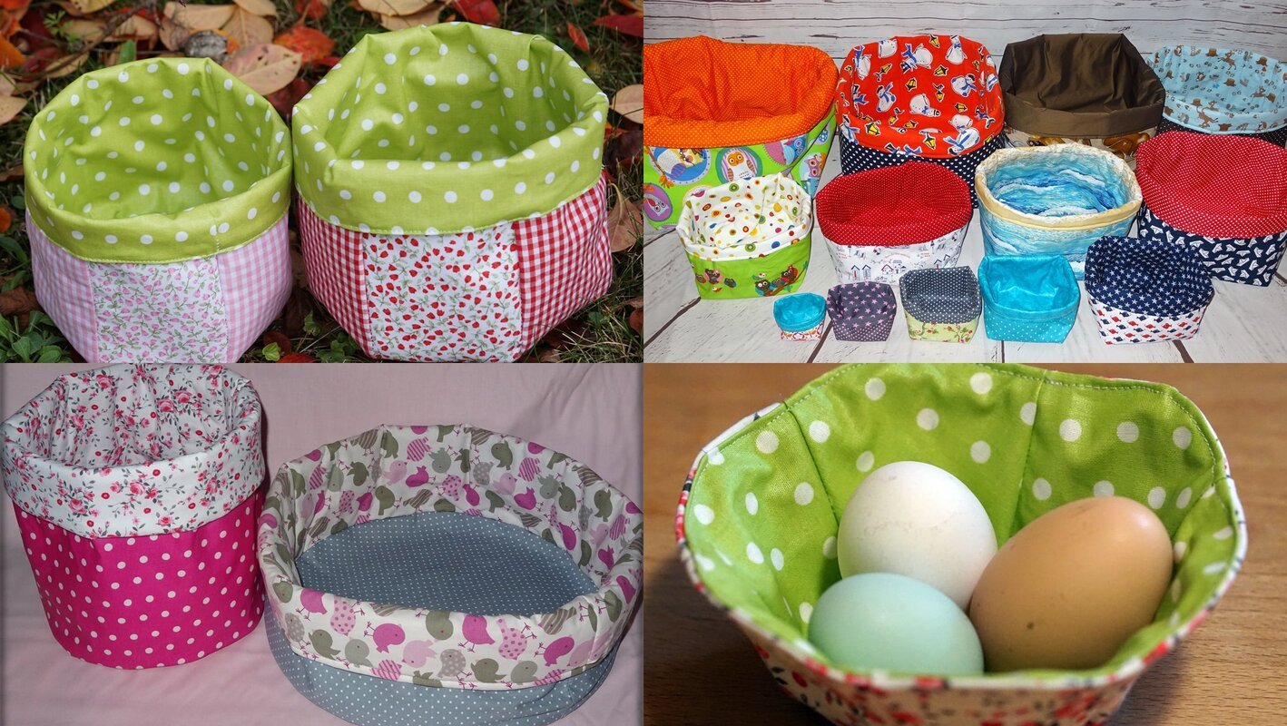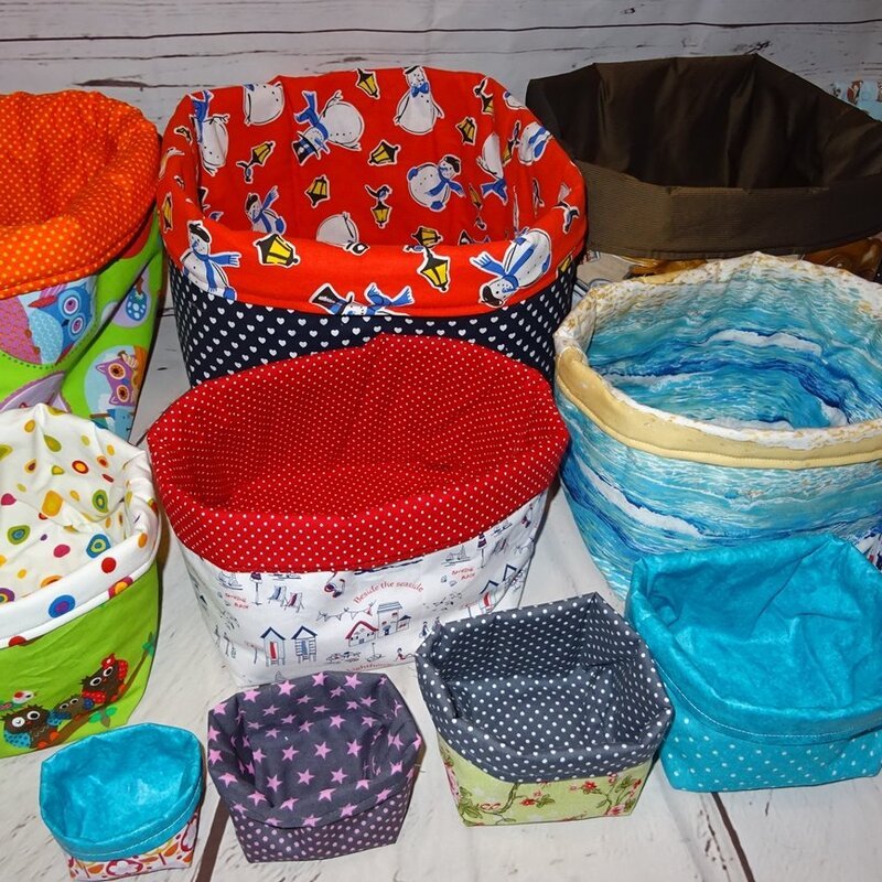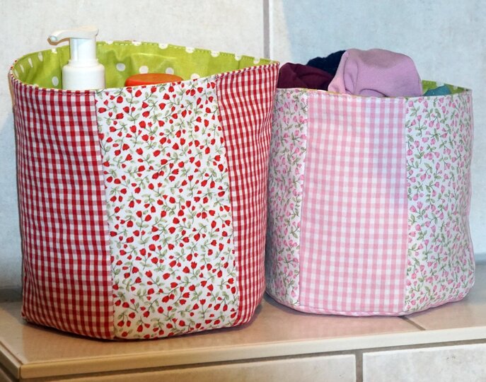 Die süßen Stoffkörbchen sind schnell genäht, wunderbar als Geschenk oder für´s Bad und Kinderzimmer.
