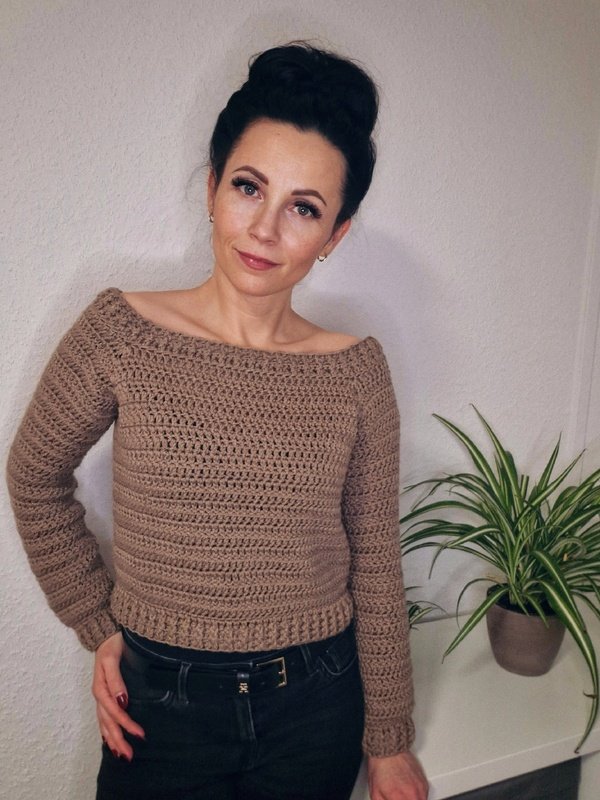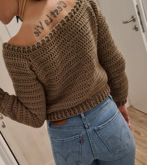 Du kannst den Pullover so lang häkeln wie du möchtest.