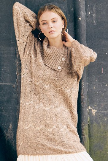 Jetzt wird es Luxuriös! Zartes Kaschmirgarn trifft auch glitzernden Pailletteneffekt. Das ganze verpackt in einem legeren gerade Schnitt, der einfach lässig fällt. Der Schalkragen mit Knopfleiste sorgt für zusätzliche Eleganz. Er wird später angestrickt, nachdem alle anderen Teile einzeln von unten nach oben gearbeitet wurden. Das Wellenmuster ist gar nicht schwer zu lernen und du hast es sicherlich ganz schnell im Kopf. Die Anleitung mit detaillierter Strickschrift, genauem Schnitt und ausführlicher Beschreibung aller Arbeitsschritte hilft dir auf jeden Fall bei einer erfolgreichen Umsetzung. Gestrickt wird mit verschiedenen Nadelstärken in Größe 38/40 oder 44/46.