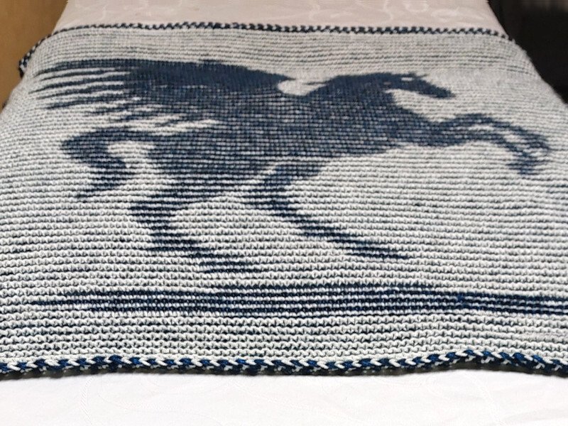 Diese Decke ist in der Technik "Illusionsstricken" gearbeitet.