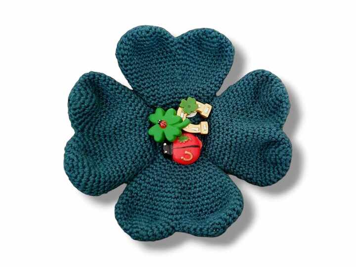 Mit dieser Glücksbox kannst Du Dir und Deinen Lieben eine große Freude bereiten. Die geschlossene Box steht mit ihrer Herzform für die Liebe. Wird sie geöffnet, entfaltet sie sich zu einem vierblättrigen Kleeblatt und symbolisiert Glück. Die Box hat im Inneren Platz für eine kleine Praline und oder kleine Glücksbringer. Sie eignet sich deshalb sehr gut als kleines Mitbringsel zur Neujahresparty oder als Geschenk für alle Partygäste. Das Beste daran ist, dass sie mit Wollresten sehr schnell und einfach gehäkelt werden kann.